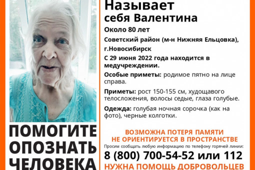 В субботу, 4 июня, ушла из дома в Дзержинском районе Новосибирска 76-летняя Людмила Трофимовна Антропова (Пилипушко). У женщины возможна потеря памяти. Волонтеры «Лизы Алерт» отправляются на поиски.