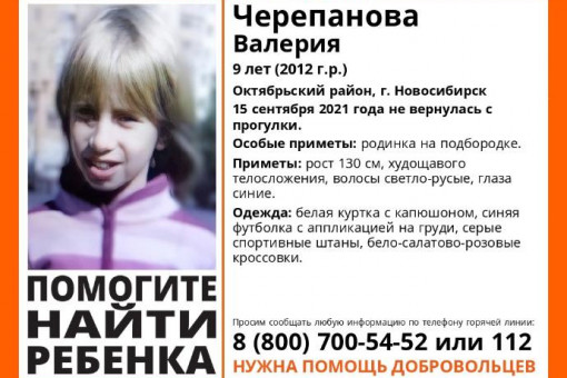 Школьница ушла гулять 15 сентября в Октябрьском районе и не вернулась домой. 9-летнюю Валерию ищут волонтеры и полиция.