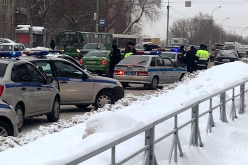 Протаранил несколько машин, едва не сбил пешеходов и попытался скрыться водитель престижной иномарки 7 января в Новосибирске. К месту прибыли целых пять полицейских автомобилей.