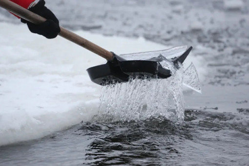 Огненную лошадь из озерного льда в центре Искитима ваяет новосибирец