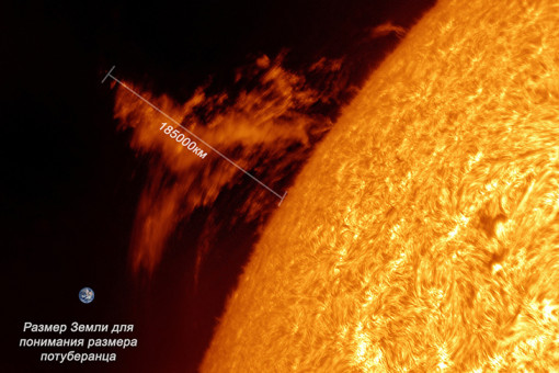 Новосибирскому астрофотографу Алексею Полякову удалось снять на видео гигантский протуберанец Солнца.