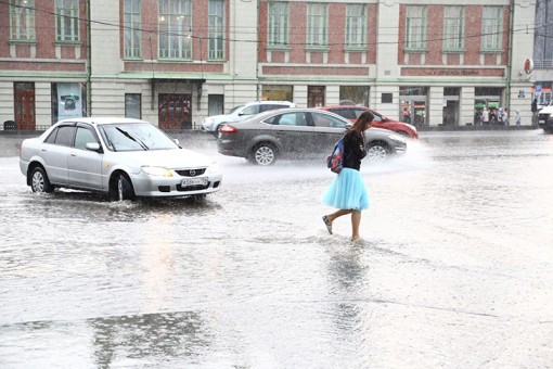 Вечером во вторник сильные осадки затопили улицы столицы Сибири, но горожане унывать не стали.