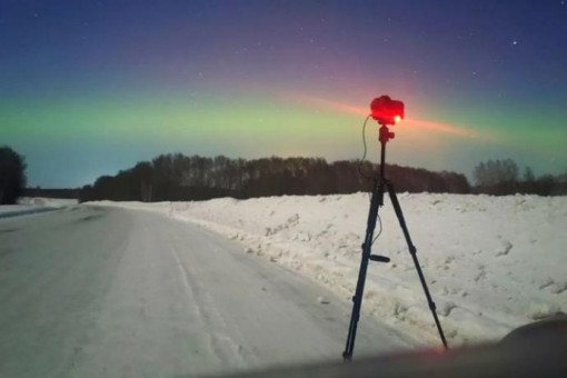 Астрофотограф из Новосибирска Алексей Поляков запечатлел северное сияние неподалеку от Новосибирска. Снимками он поделился в своих соцсетях.