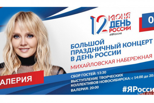 Хедлайнером праздничного концерта «Россия – моя страна!» 12 июня по инициативе правительства Новосибирской области станет народная артистка России Валерия.