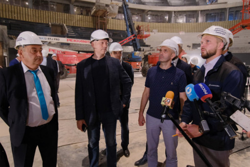 Первый замминистра спорта РФ вместе с главой региона ознакомился с ходом строительства нового ЛДС в Новосибирске.