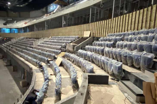 На стройплощадку нового ледового дворца доставлена первая партия кресел – порядка 500 штук, в ближайшее время начнется их монтаж на трибуны большой арены. Работы идут четко в соответствии с графиком.