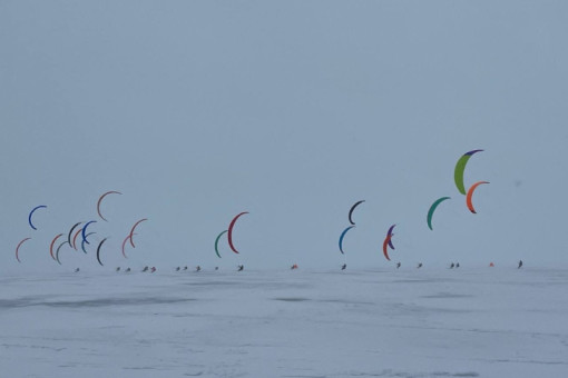 Новосибирск принимает 17-й Кубок Сибири по сноукайтингу: 78 спортсменов борются за победу на льду Обского моря. Лидеры гонок - спортсмены из Новосибирска.