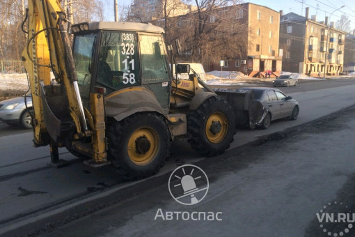 ДТП с необычным участником произошло в среду, 4 апреля, в Новосибирске. Трактор-погрузчик без лишних прелюдий въехал в остановившуюся впереди легковушку.