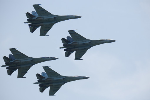 Четыре мощнейших современных истребителя Су-35 взмыли в небо над головами десятков тысяч зрителей под Новосибирском. Боевые самолеты исполнили фигуры группового пилотажа, удивив новосибирцев.
