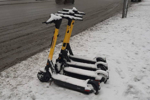 Снег и метель в Новосибирске 3 апреля, но на улицах уже можно встретить предлагаемые в аренду электросамокаты.