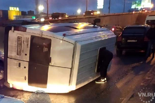 Микроавтобус Ford завалился на бок рано утром 10 ноября в Кировском районе Новосибирска. Из-за этого при выезде с Бугринского моста образовались большие заторы – ситуация не меняется уже два часа.