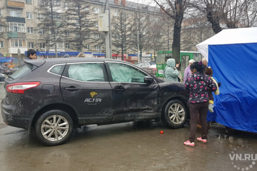 Продуктовая палатка с овощами была протаранена иномаркой в Ленинском районе Новосибирска. На место прибыла детская реанимация.