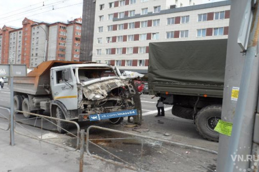 Серьезное ДТП с участием двух КамАЗов произошло в Новосибирске: самосвал КамАЗ врезался в большегруз той же марки, следовавший в составе военной колонны, сообщает «АСТ-54».