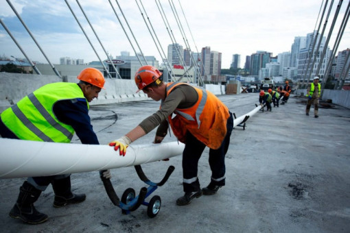 70 металлических тросов прикрепили к пилону в виде буквы «Н» на правом берегу Оби. Как заявляют строители, вантовая система четвертого моста стала новой архитектурной доминантов в центре города.