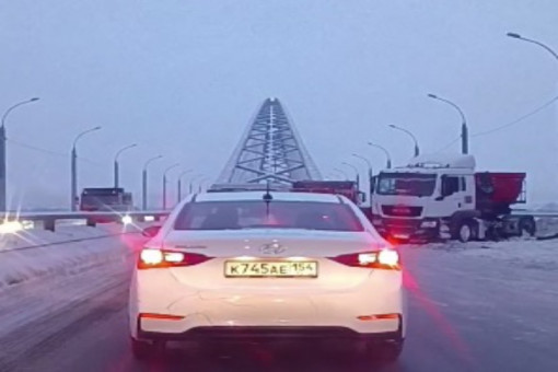 Движение с левого на правый берег по Бугринскому мосту затруднено из-за утренней аварии с участием длинномера. Грузовик MAN развернуло на 180 градусов. Еще три легковых автомобиля пострадали.