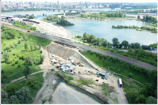Трубы защитного экрана тоннельного путепровода уже установили в теле насыпи железной дороги на левом берегу Оби. Замкнутый контур будущего тоннеля уже готов, заявляют концессионеры.